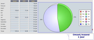 Grafische en numerieke weergave van de omzetgegevens van de klant per maand en per geselecteerd jaar of 2 verschillende jaren vergelijken.
