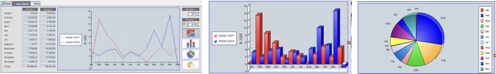Aan de rechterkant van het scherm worden de jaartallen ingesteld als Periode-1 en Periode-2 en ziet u de knoppen om te schakelen tussen een lijn-, staaf- of taartdiagram.