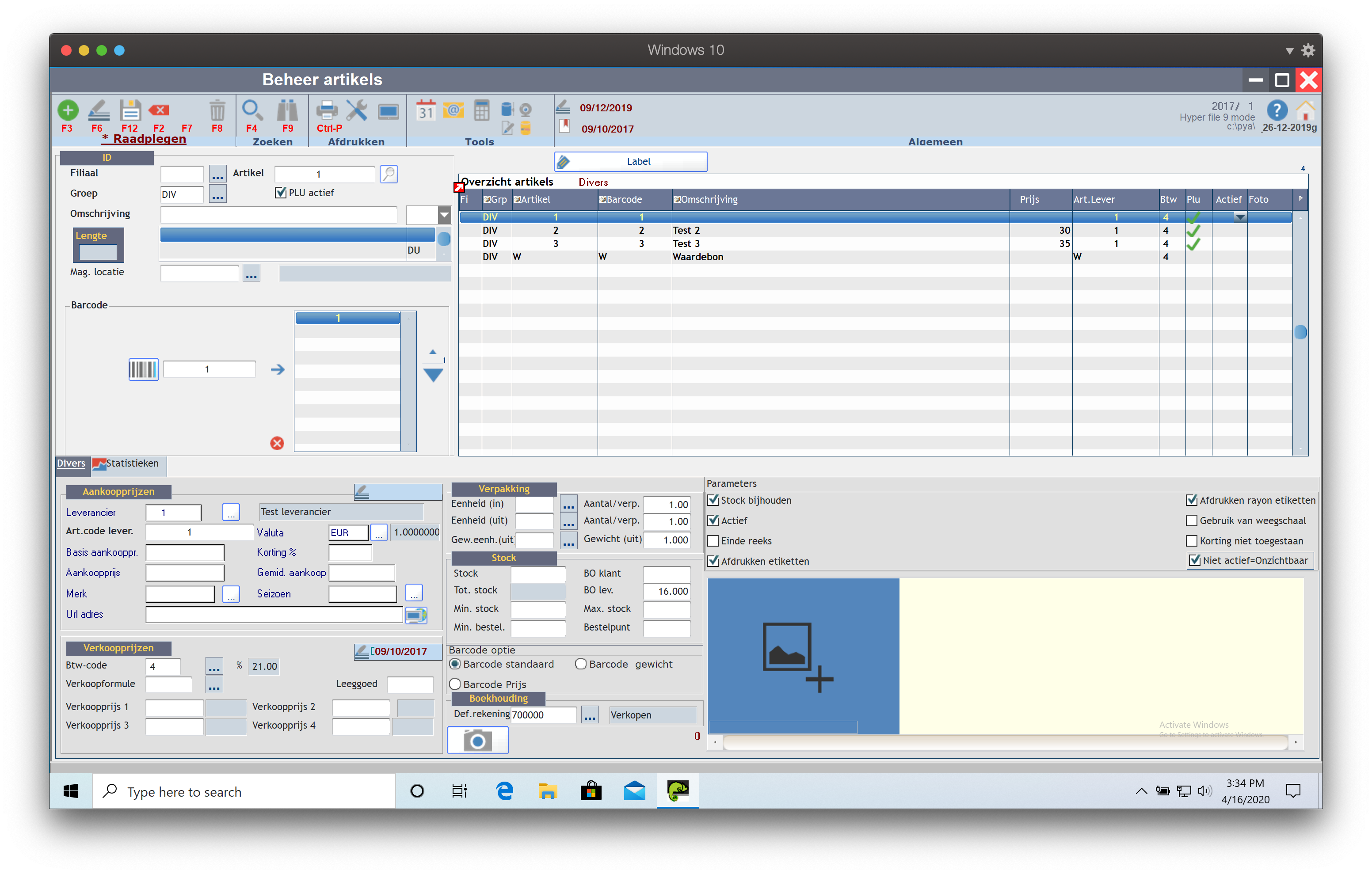 - Barcode - Scan of typ de barcode van het artikel en druk op de rechtse pijl om de barcode toe te voegen aan het artikel.