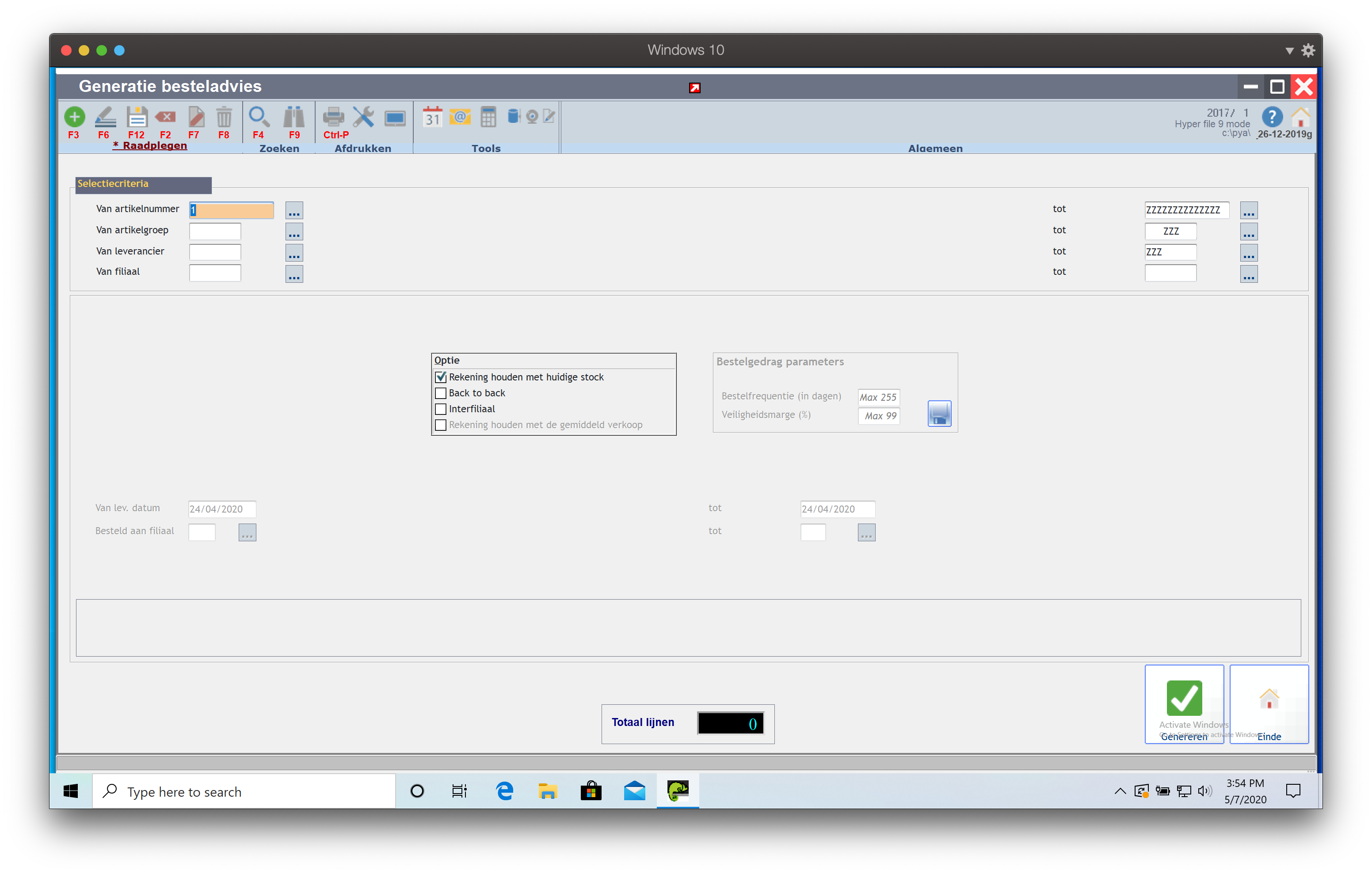 Genereer een besteladvies op basis van Artikelnummer, Artikelgroep, Leverancier of Filiaal.