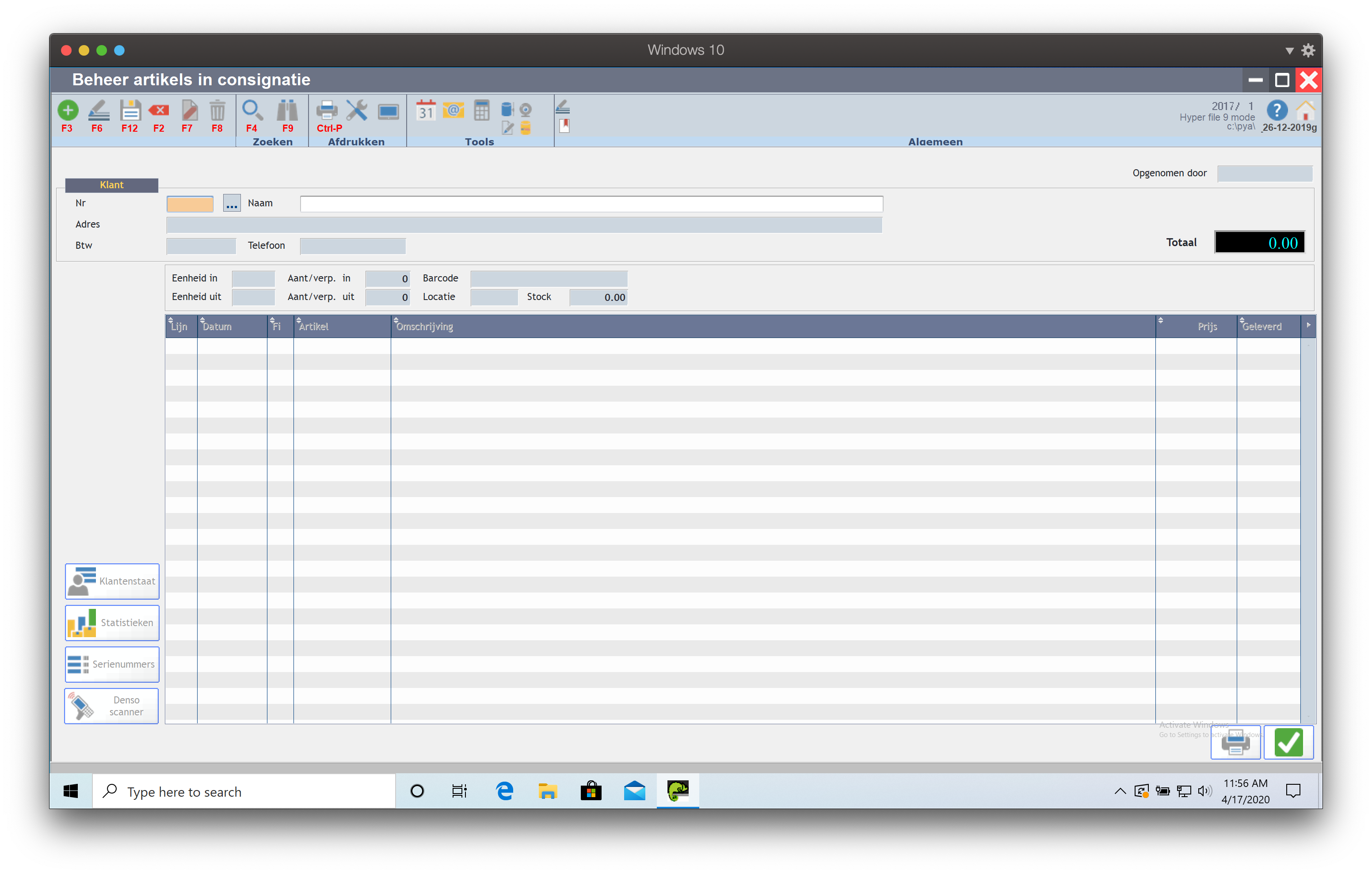 Door op de knop 'Denso scanner' te klikken kan u artikelen aan de consignatielijst toevoegen door hun barcode te scannen.